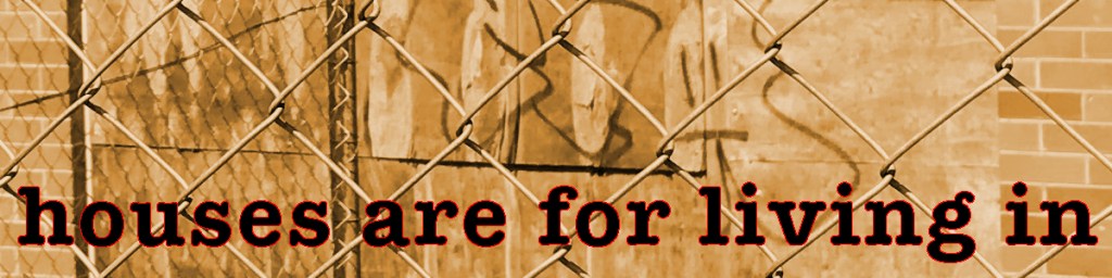 When houses and apartments are left empty and remain unoccupied for years at a stretch and are in no way utilised as a home for anyone at all and now a wire mesh fence and numerous plywood boards obstruct useful access to the property whilst dilapidation and ruin visibly encroaches upon many such structures and people have no choice but to park themselves somewhere in the streets and under the bridges and around the perimeter of railway stations and in any architectural crevice they can crawl into with their possessions in bags of all types and sizes and with tired eyes looking out upon a mean-spirited world then it is fair to say those same houses and apartments are not for living in but are for buying and selling and profiting.